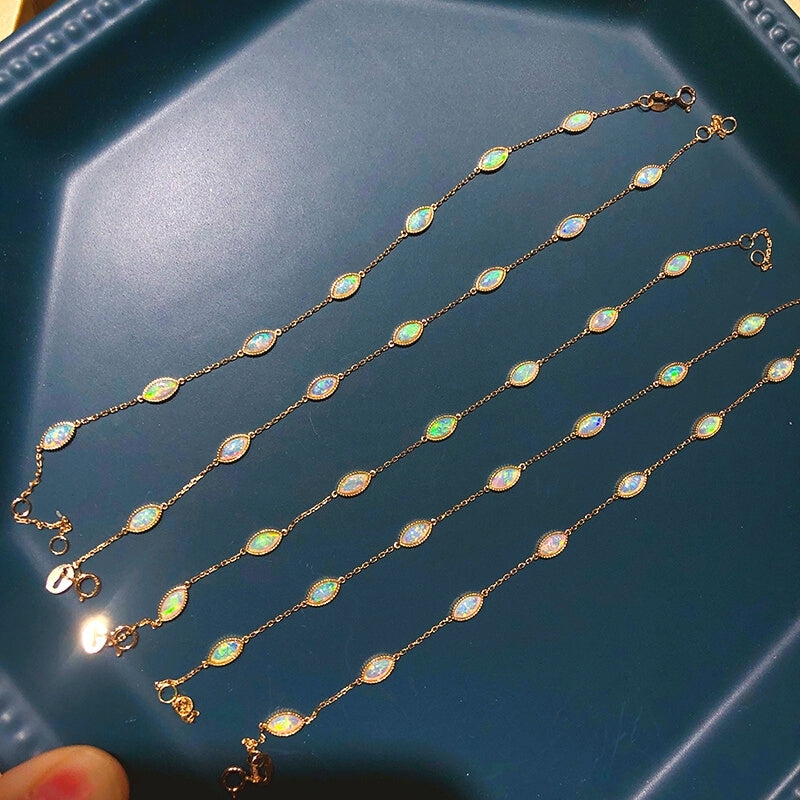 This dainty 18K yellow gold bracelet with 7 pieces of Australian fire opal gemstone features beautiful flashes of playful colors that catch both eyes and hearts. The Australian opal is magnificent in its raw form, with all the adornments added, its beauty and color play are even more enhanced. This is a timeless piece made for everyday wear. Made with solid 18K yellow gold with hallmark and 100% natural Australian fire opal gemstone. All of our Australian opals are natural and therefore may vary in color, the pendant is made with raw opal gemstone which makes each piece uniquely beautiful.