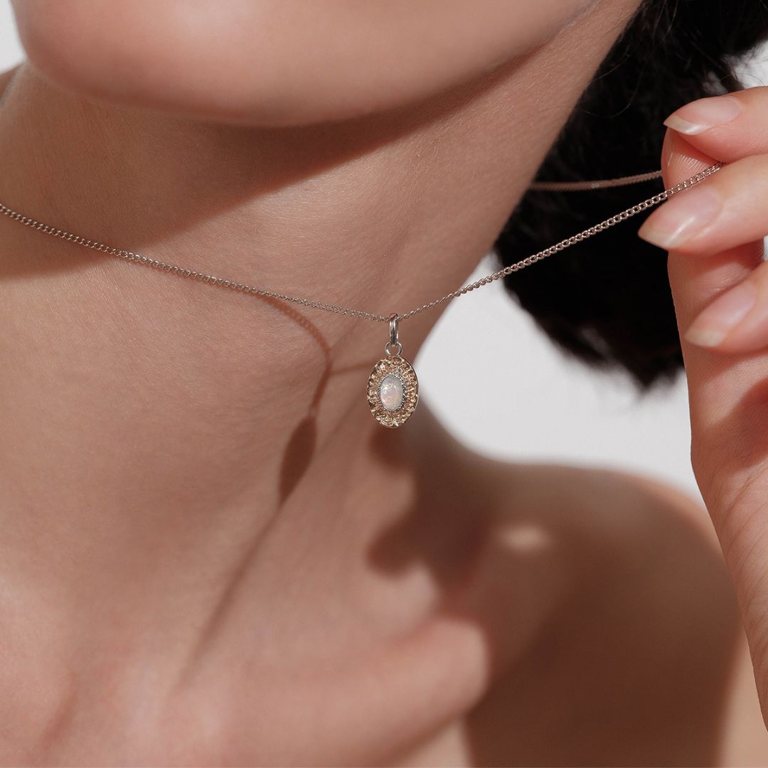 Pair this pendant necklace with the matching opal earring studs and opal ring from the same collection for a complete, coordinated look.