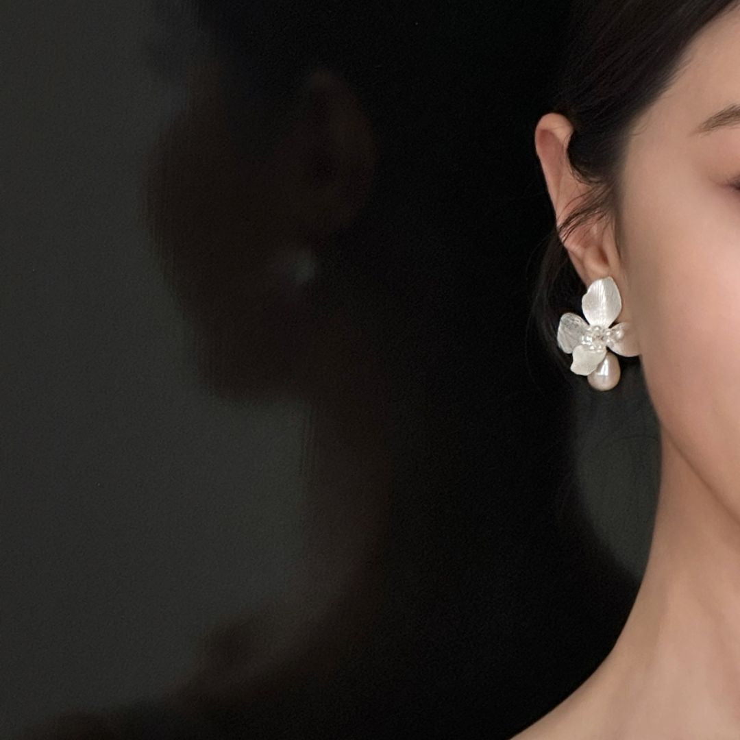 Our white flower pearl earrings are the epitome of elegance and sophistication. Whether you're a bridesmaid in a garden wedding, attending a summer night party, or celebrating a nature-inspired ceremony, these earrings will elevate your ensemble with their Art Deco charm and symbolic beauty. The Iris flower holds deep symbolic meanings, representing hope, faith, wisdom, and courage. Its intricate and delicate petals inspire these earrings' design, making them not only a beautiful accessory but also a meaningful one.